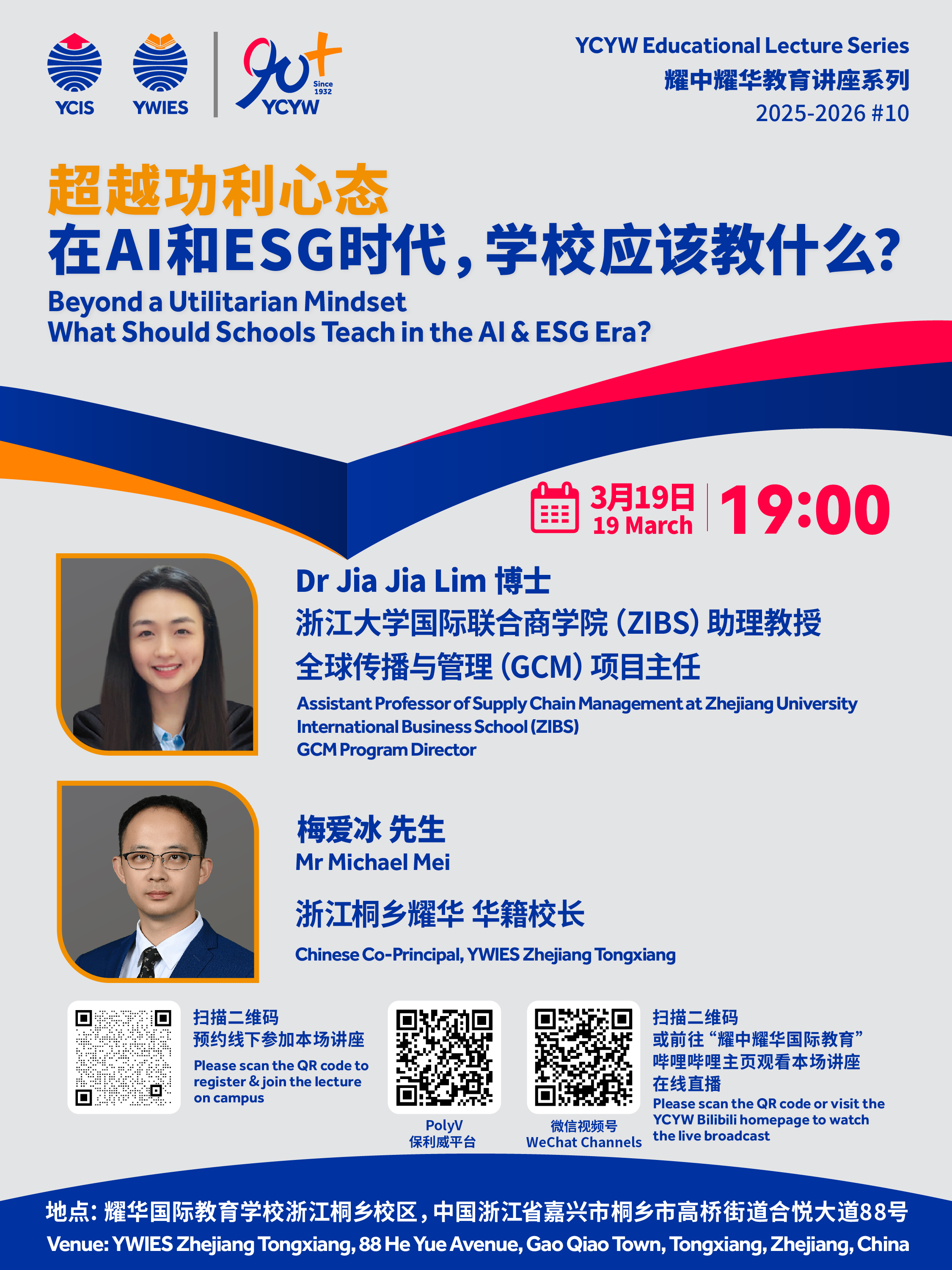 📢 As a pioneer of international education in China, the Yew Chung Yew Wah (YCYW) Education Network, in collaboration with global education experts, is proud to launch a free public dialogue platform: the Yew Chung Yew Wah Education Lecture Series, themed "Challenges and Breakthroughs in Contemporary Education."