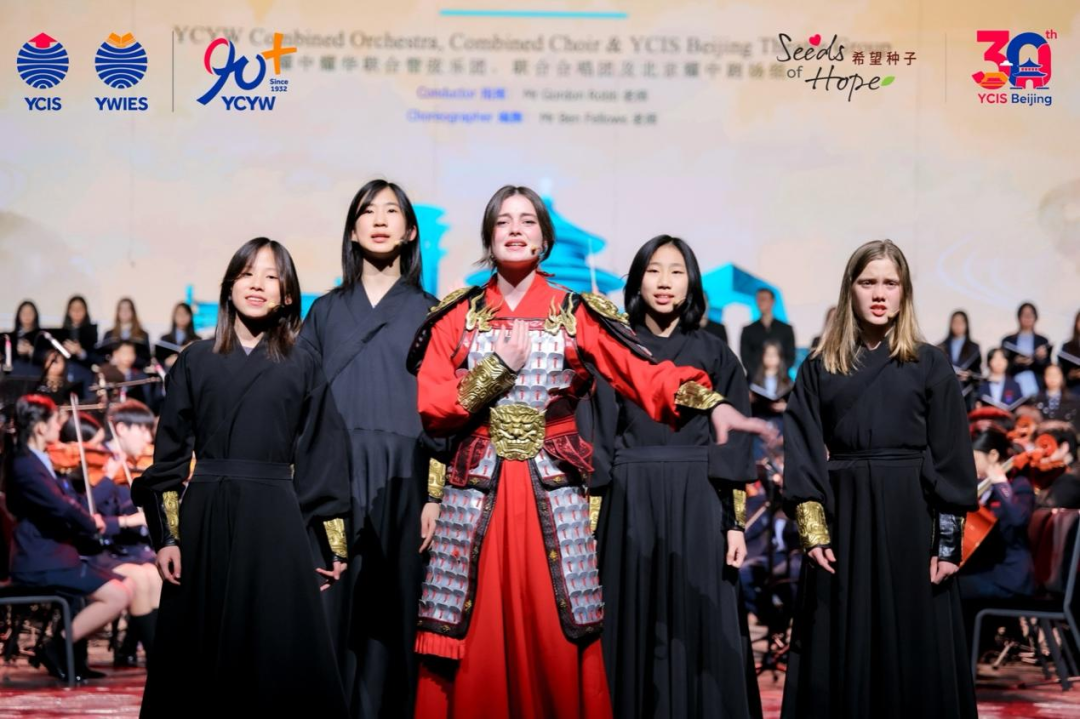外,由北京耀中戏剧社的师生们出演的原创音乐舞台剧《花木兰》则是为校庆特别而作。乐曲构思精妙,融合说唱、抒情演唱与流行元素,学生们随乐起舞,与管弦乐团同声而和,让花木兰的勇敢、坚韧、忠诚与奉献在台上熠熠生辉。